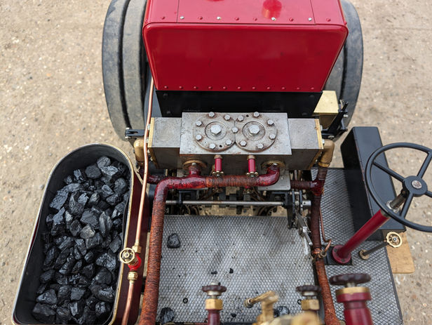 Its fair to say I didnt hold much hope for the little tractor, although beautifully made the fact you have a duplex engine coupled to a relatively small boiler is normally a recipe for an engine that simply isnt practical due to too little steam capacity, too little power or both! However, once up to pressure my original misgivings were quickly squashed as it impressed everyone driving around the yard, including storming up the rather steep hill on the farm entrance reaching the top with plenty of coal, steam and water.
