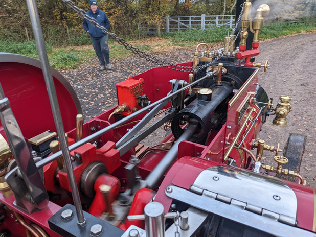 Built in 2017 by Dream Machines it has undergone several modifications and improvements over the years and the end result is an impressive and well-mannered engine. On the road and rally field it is an easy engine to handle with plenty of power and a good turn of speed in top gear. The large and closely spaced side steps make getting on and off the engine very easy, its not something I normally think about but for someone with mobility issues it could be a great alternative to clambering up a full size or straddling a smaller miniature.